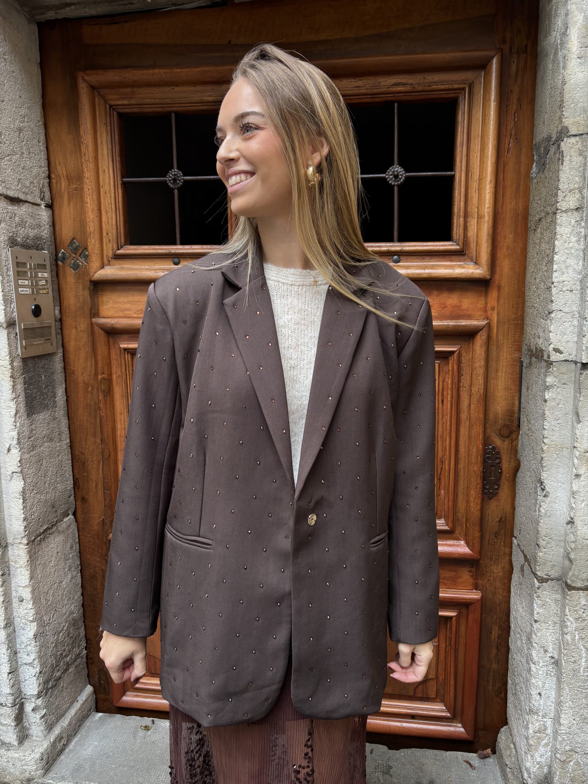 • Blazer marron strass oversize